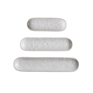 Serve up a variety of spices, sauces or flavored butters in these long stoneware dishes. The narrow design makes them easy to handle while adding flair to the overall table setting. They can also be placed next to serving dishes to place their matching utensils. Available in 3 sizes